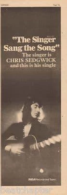 CHRIS SEDGWICK Singer Sang Song Poster Size Original Vintage music press 1973 Ad