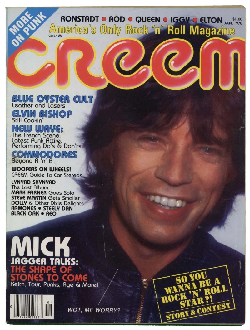 Creem Magazine January 1978 Blue Oyster Cult Lynyrd Skynyrd Mick Jagger Rolling Stones Iggy Pop