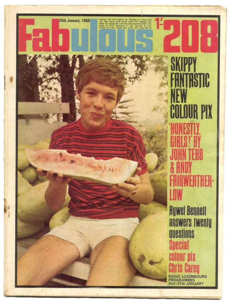 Fabulous 208 Magazine 25 January 1969 Morgan Fisher pinup & article; Skippy; Chris Carey pinup; Marbles pinup; Richard Warwick pinup & article; the Casuals; Hywel Bennett 20 questions.