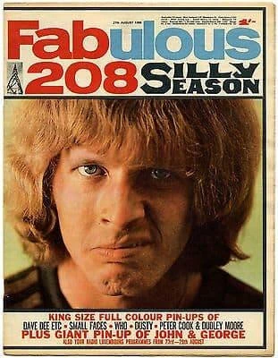 Fabulous was a British pin-up magazine launched in January 1964. It later changed its name to Fabulous 208 after a few years & then again to Fab 208 in the 1970s. Fabulous 208 magazine was one of the top selling UK teen magazines of the 60s and early 70s. It's larger size of 13x10 inches made it extremely popular as many pages consisted of full colour shots of pop, beat, psychedelic groups and musicians of the time. Many of the full page pin-ups were cut out and stuck to bedroom walls so complete issues are becoming increasingly hard to find. ..