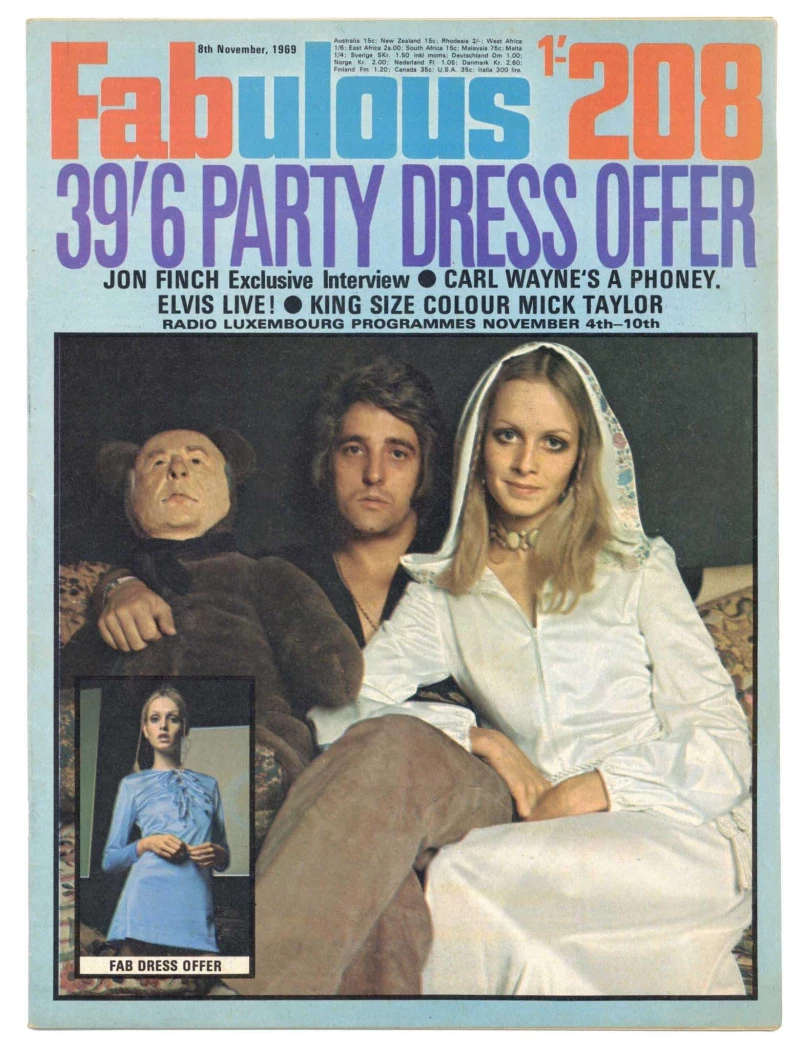 Fabulous 208 Magazine 11 November 1969 features Mick Taylor 2 page article; Carl Wayne 2 page article; Twiggy poster; John Finch 2 page article; Elvis Presley 2 page article. Hollies/Terry Sylvester article. ..