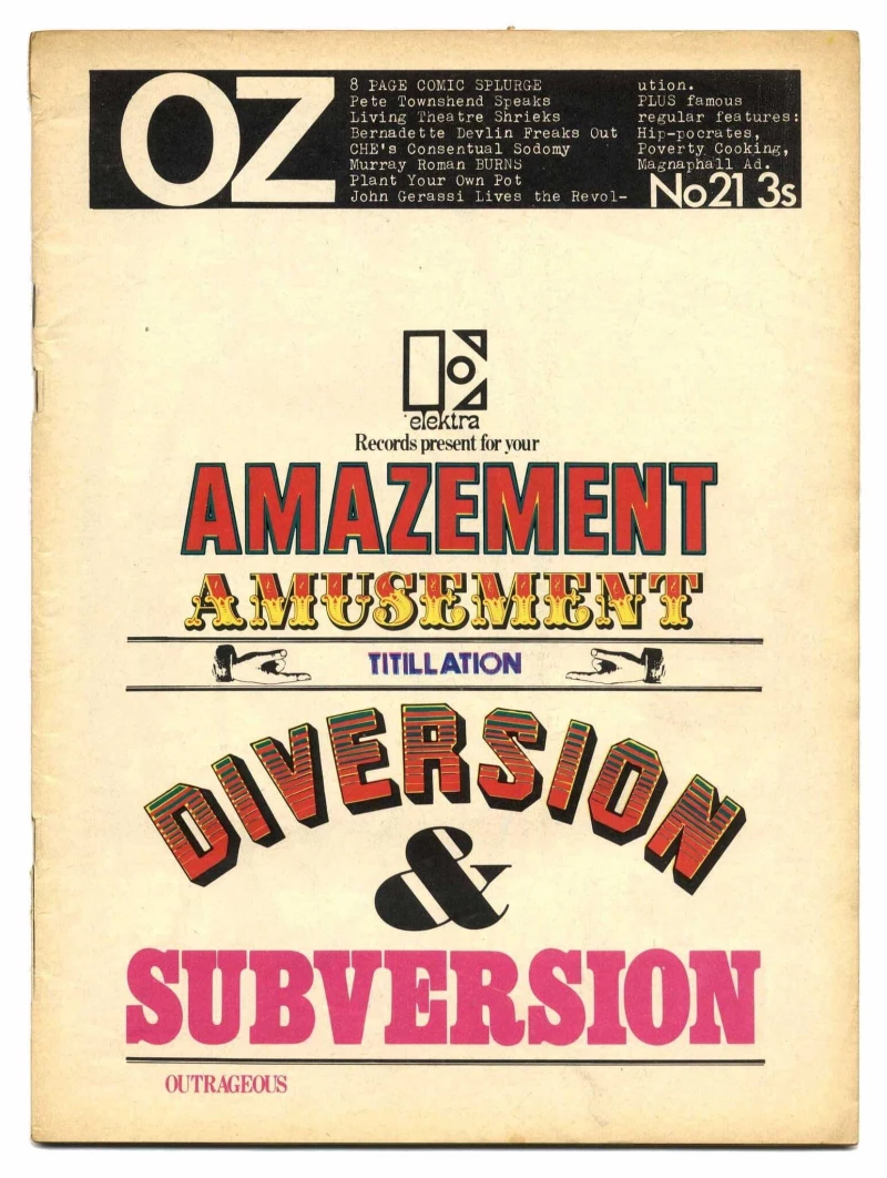 OZ Magazine No 21 May 1969 Elektra Records Amazement advert cover with Outcry & Running Man inserts